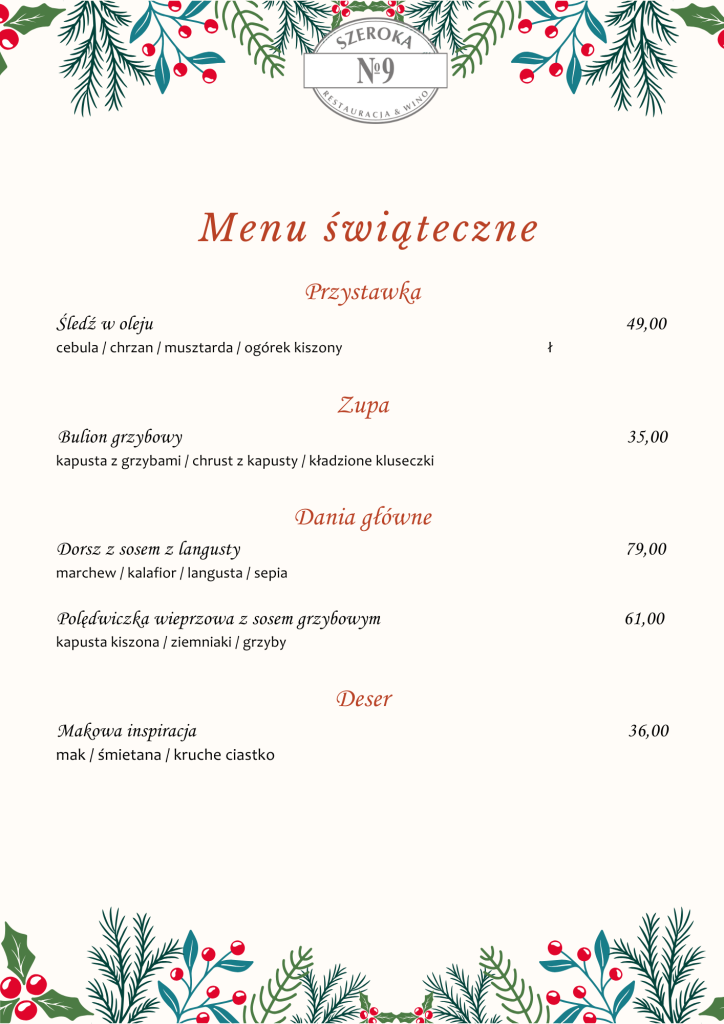 Idea otwarcia restauracji narodziła się już dawno temu. Od pierwszej iskry do realizacji minęło sporo czasu – okres ten pozwolił naszej wizji dojrzeć i nabrać wyraźnych barw. Inspiracją były podróże, spotkania z wyjątkowymi smakami oraz estetyką, która potrafi zachwycić. Chcieliśmy stworzyć przestrzeń, w której każdy poczuje się swobodnie i wyjątkowo. Taką, gdzie można odpocząć lub popracować przy filiżance aromatycznej kawy, kieliszku wina czy talerzu pięknie podanego dania. Po wielu miesiącach planowania, dopracowywania wystroju oraz tworzenia autorskich receptur, restauracja i kawiarnia Szeroka № 9 powitała pierwszych gości. Nasza wizja stała się rzeczywistością. Chcesz spróbować wyśmienitego jedzenia na Starym Mieście w Toruniu? Wpadnij do nas i spełnij swoje kulinarne marzenia!